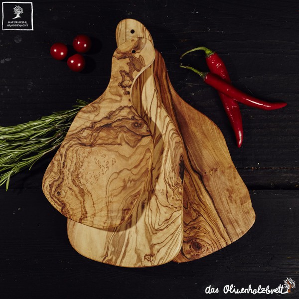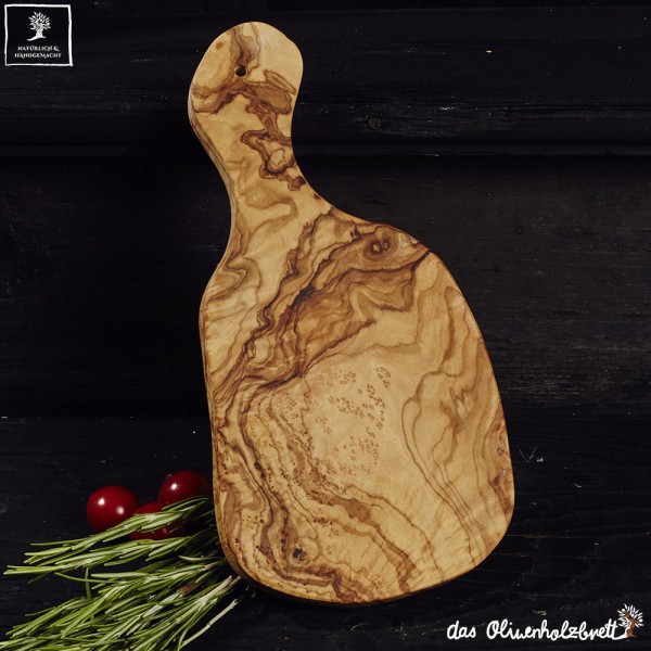 Typical cutting board mediterranean style, with handle. Available in several sizes.