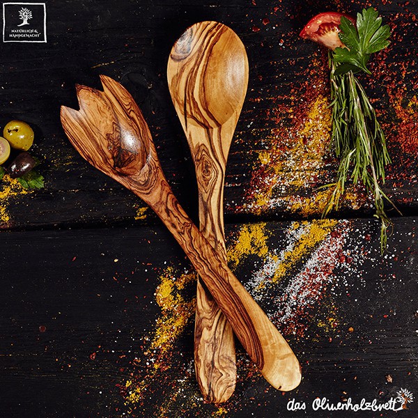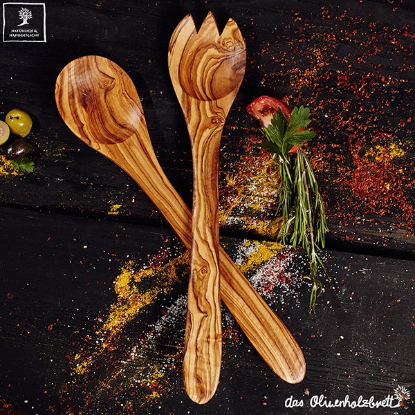 Olive trees are only cut down when they do not carry any furit for long periods of time. This is a good example of a sustainable cycle in the production of natural products. This is a good illustration of how humans can work together with nature to produce enviromently friendly products. Each product is handmade using traditional methods and the highest quality of wood. The salad cutlery is oiled with a local oil. It is a wonderful piece of natural wood and a slice of mediterranean living...It is perfect to cut vegetables, fruits, herbs, and spices also meat....