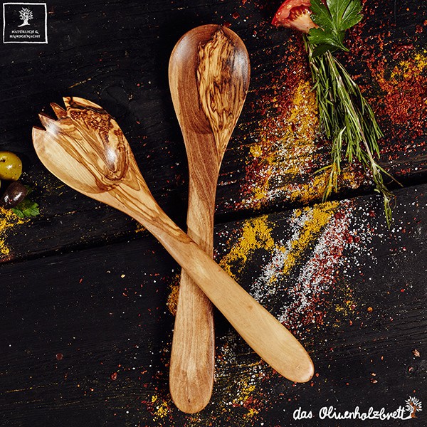 For the enjoyment of this product and the character of the wood to be preserved for as long as possible by gently washing the board after use, only using lukewarm water and washing up liquid, then dry immediately! Do not place on a radiator, warm areas or hot places. For the best possible care you rub the salad cutlery regularly with cooking oil and then wipe it off with a dry cloth. In addition to maintaining the board it amplifies the grain of the wood which does it just!
